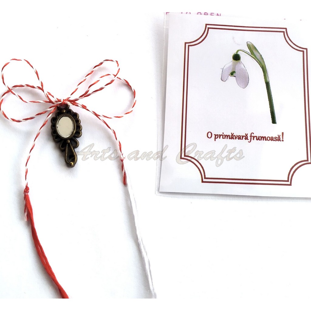 Martisor ambalat individual in punguta de celofan autoadeziva inscriptionata cu luna martie.