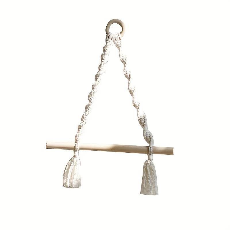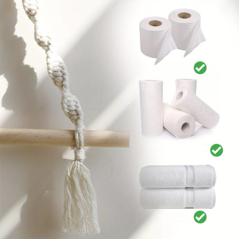 Suportul pentru sustinerea rolei de hartie igienica este realizat din lemn si macrame.
