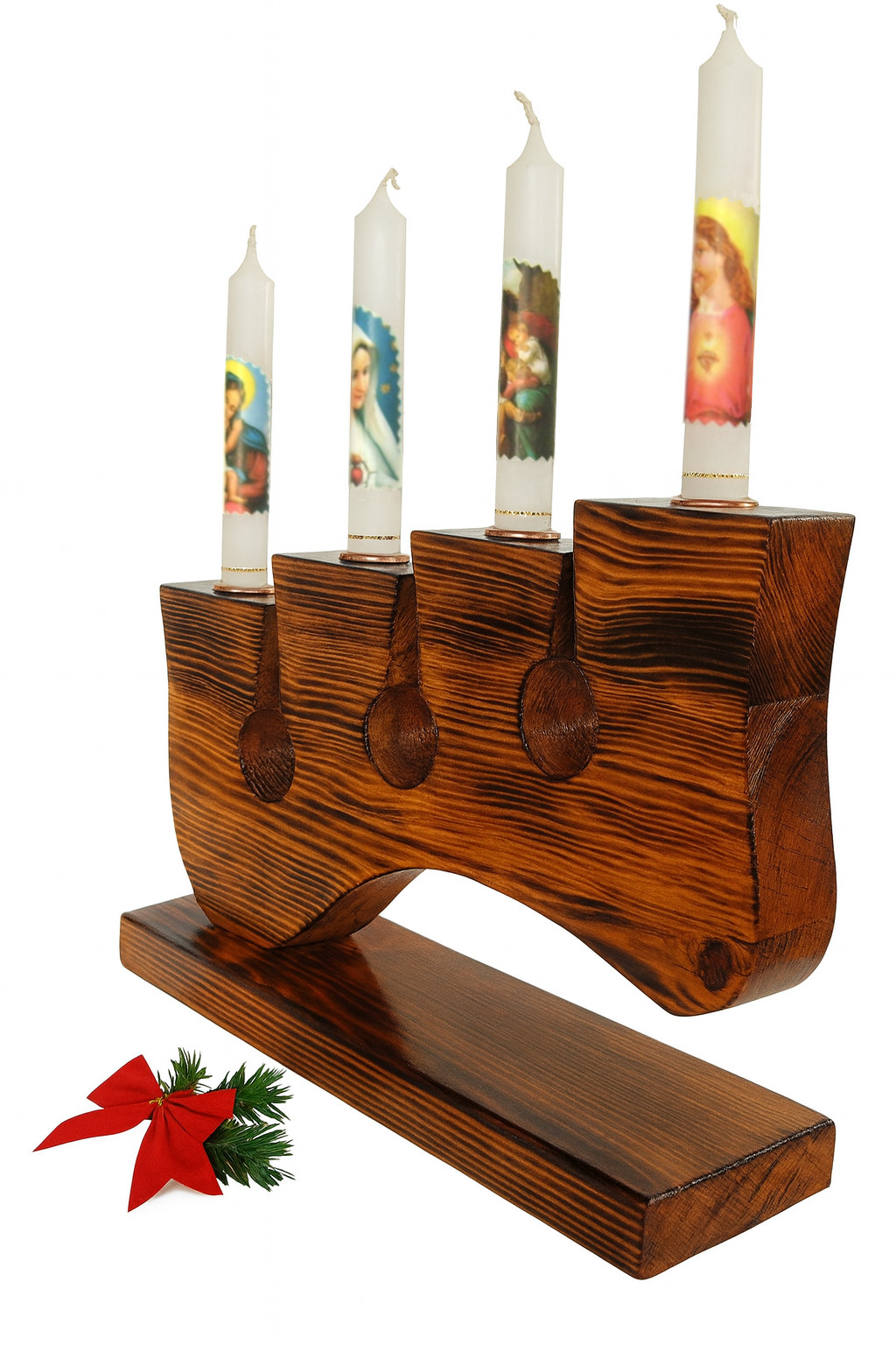 Etichete: Suport lemn 4 lumanari – handmade, ars si lacuit – model religios