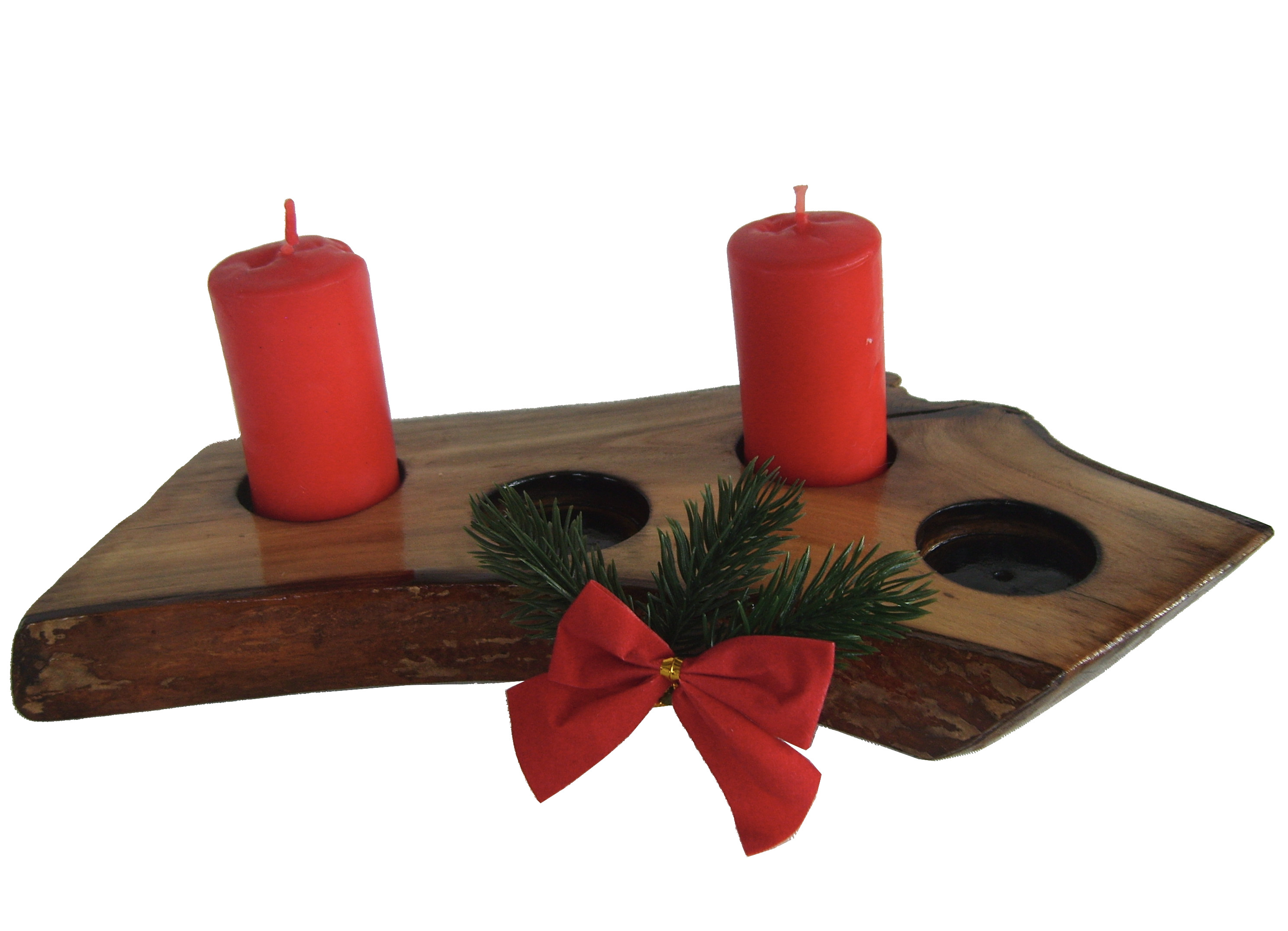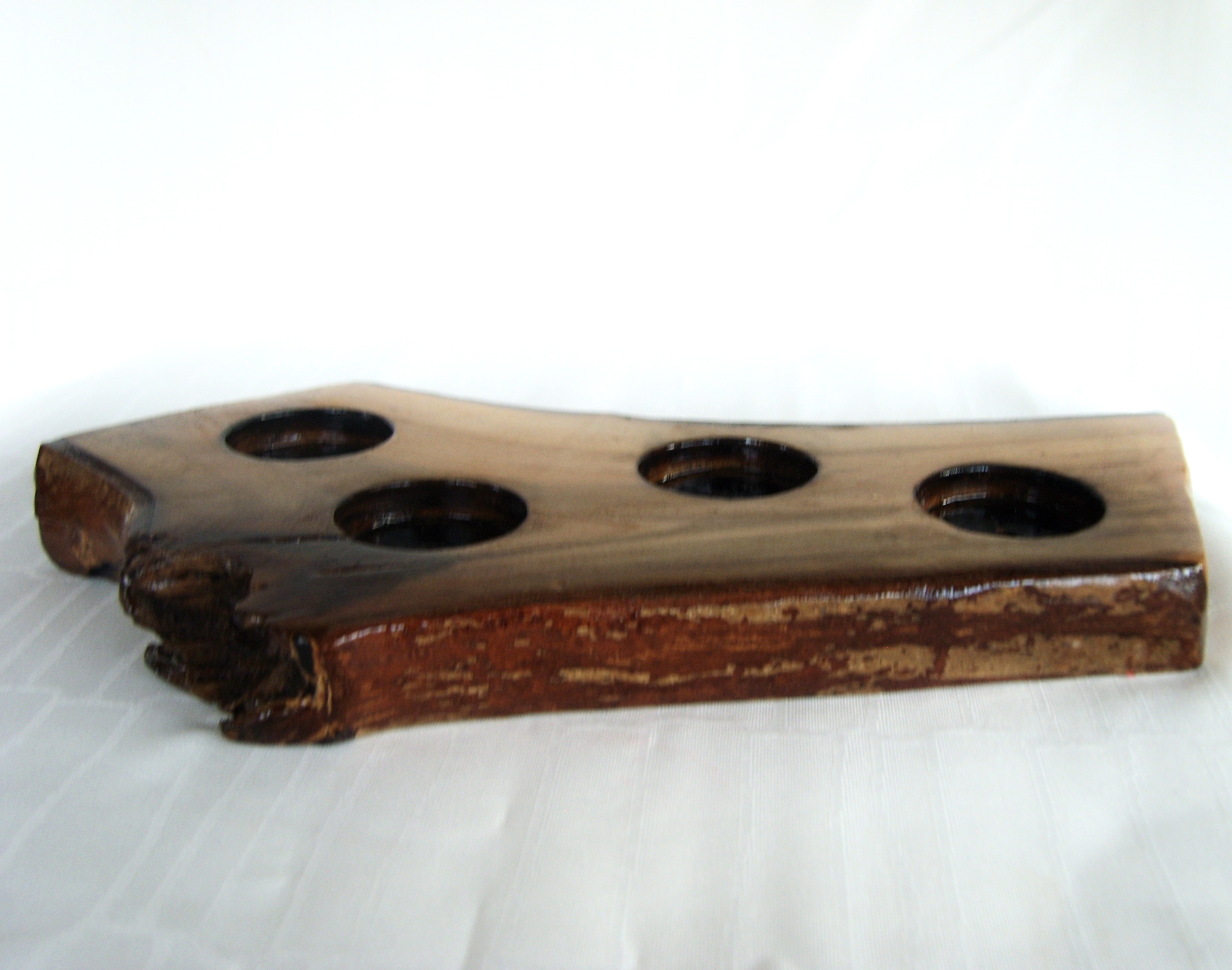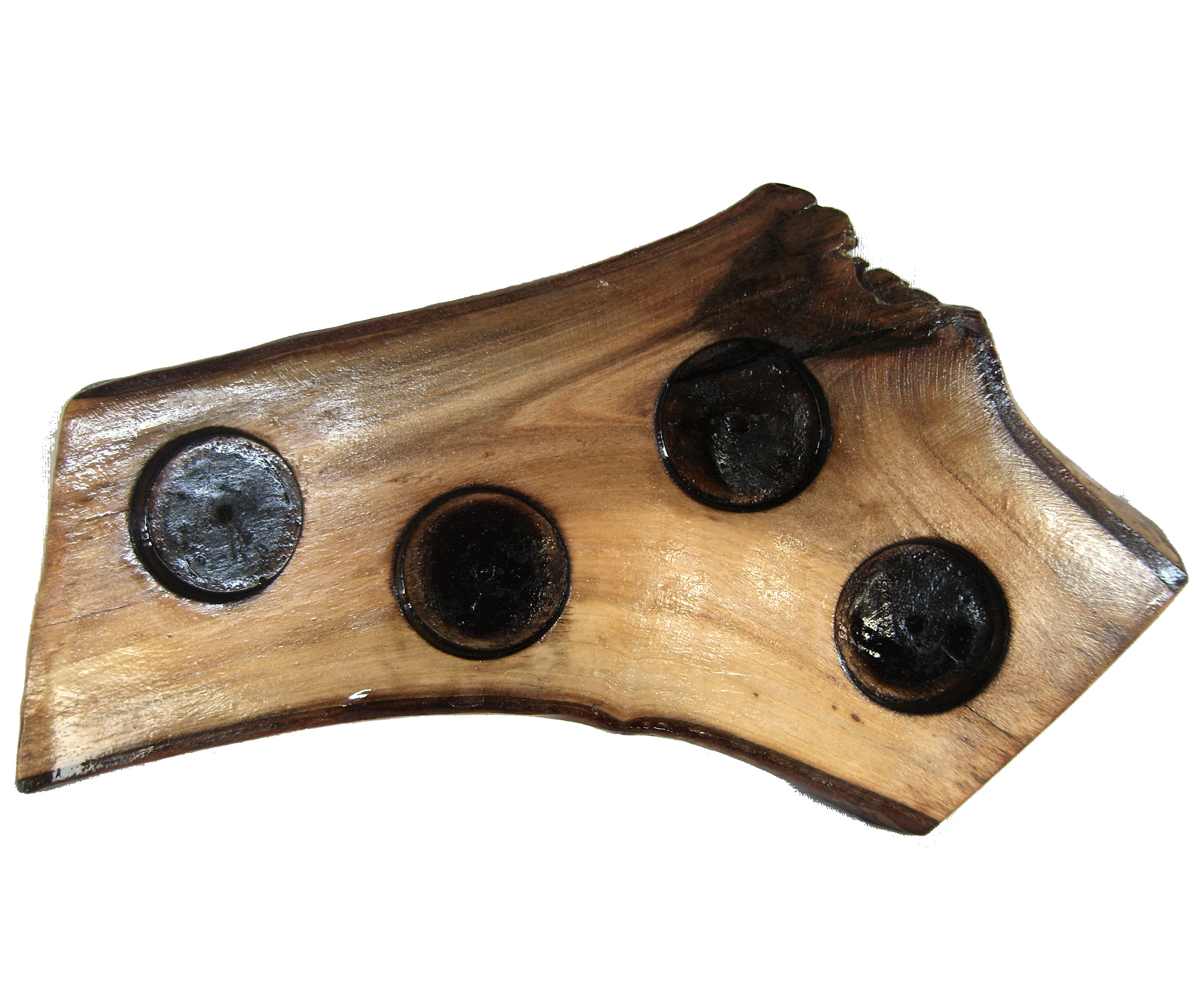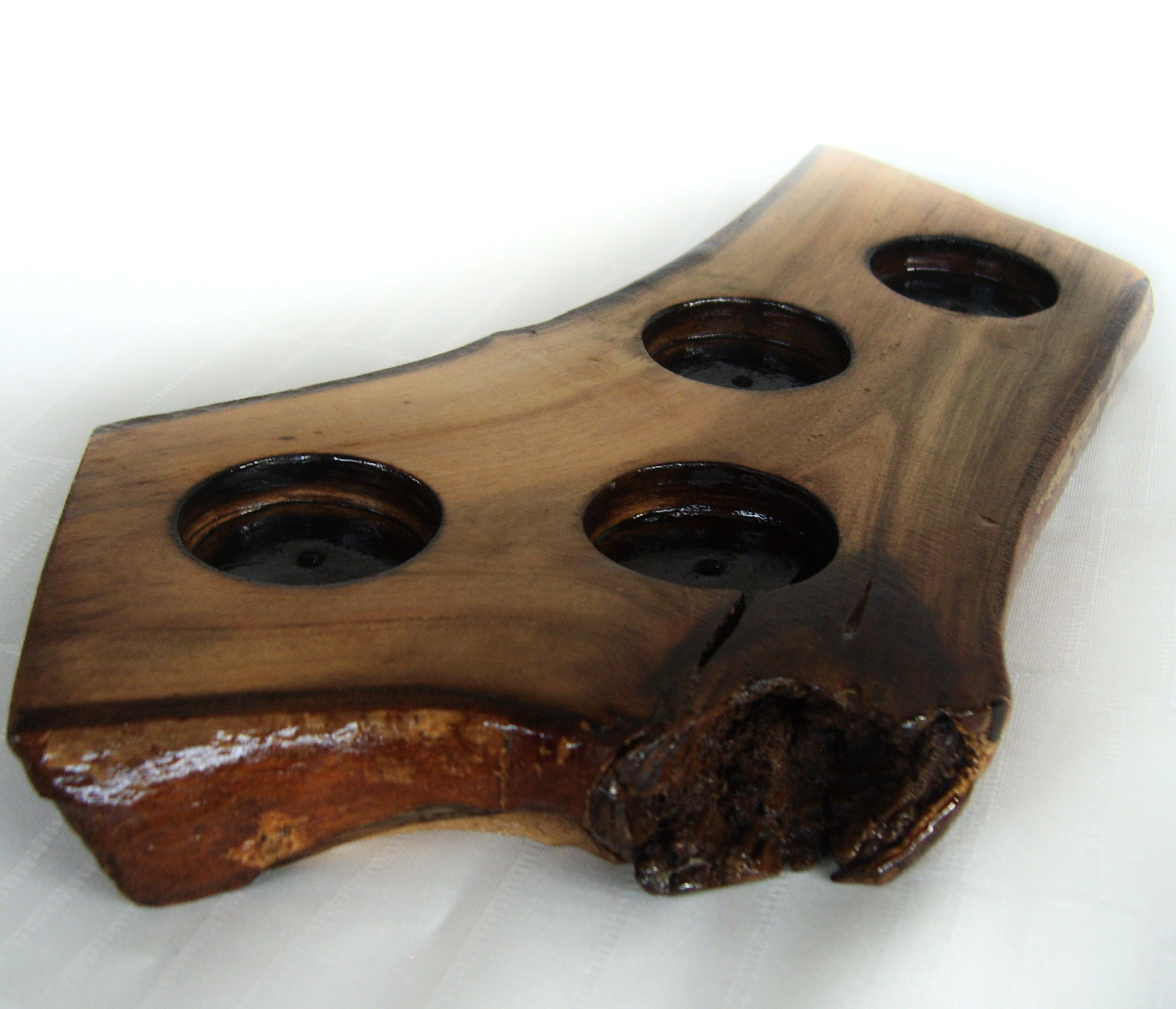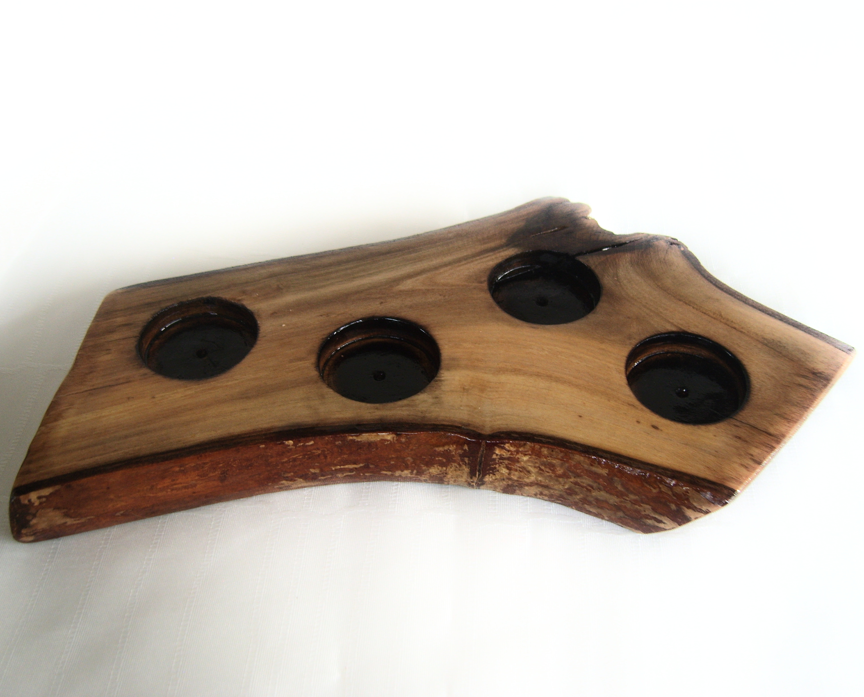 Suport decorativ din lemn pentru 4 lumanari – piesa rustica, lacuita, design natural