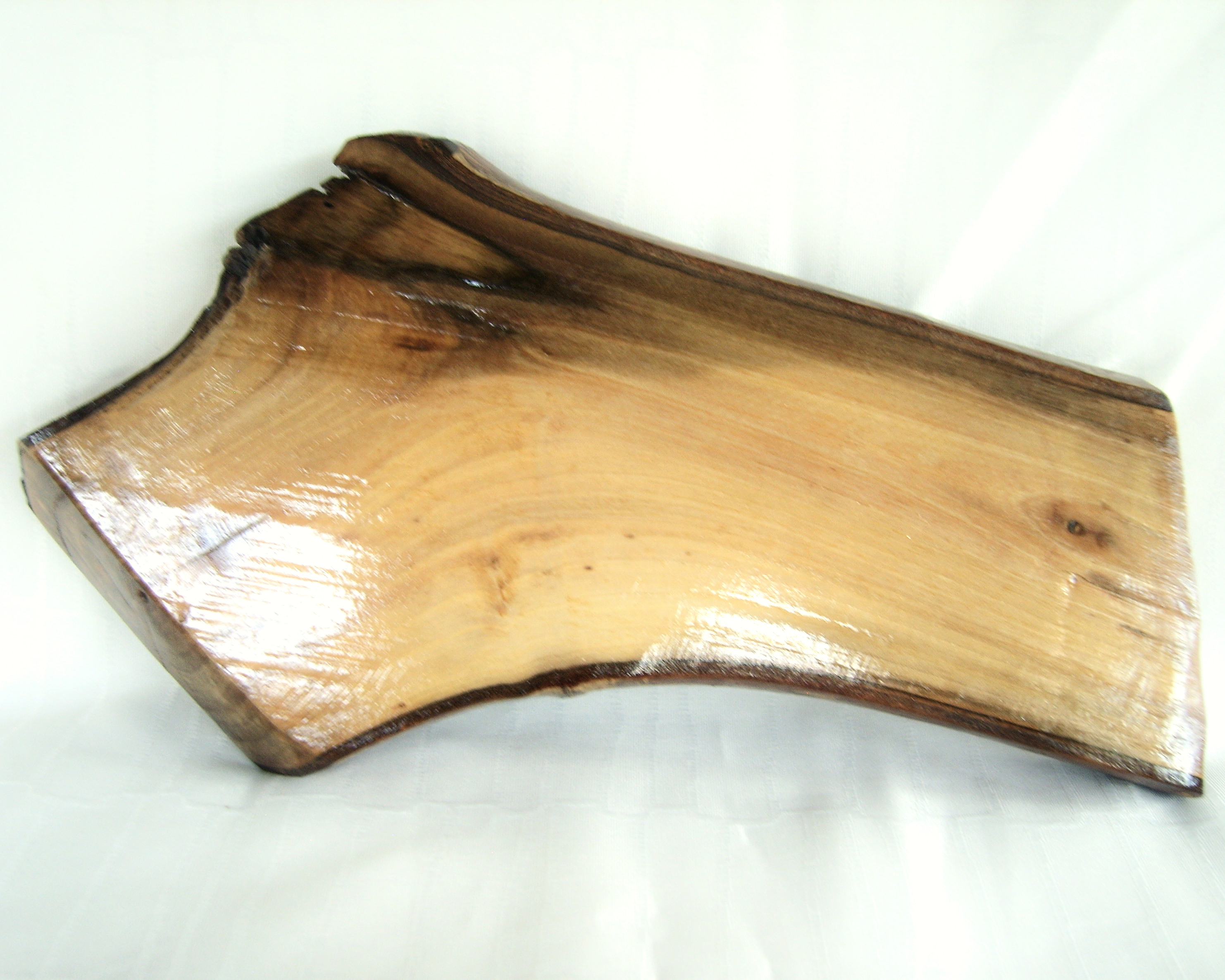 Acest suport decorativ pentru lumanari este realizat din lemn masiv, avand o forma organica, cu margini neregulate ce pastreaza caracterul natural al materialului. Finisajul lacuit evidentiaza fibra lemnului si ofera protectie si durabilitate in timp.