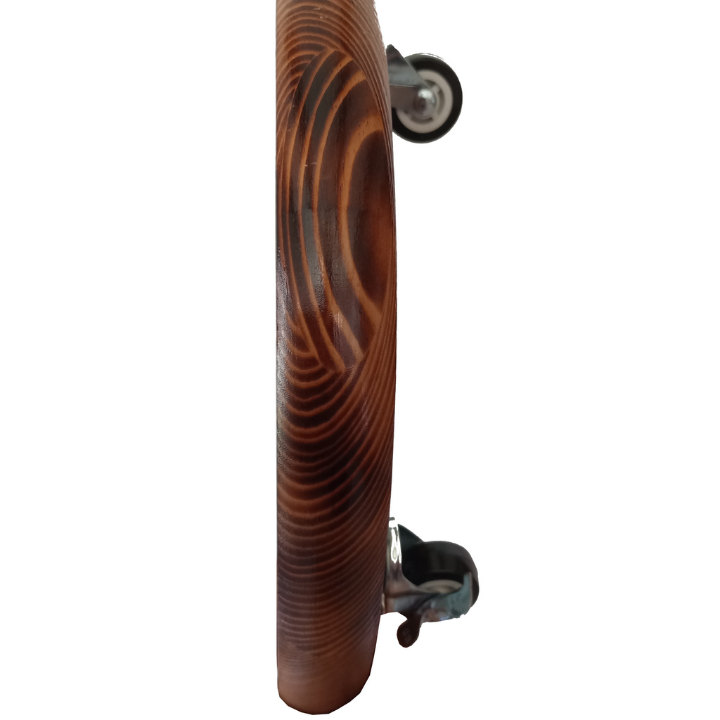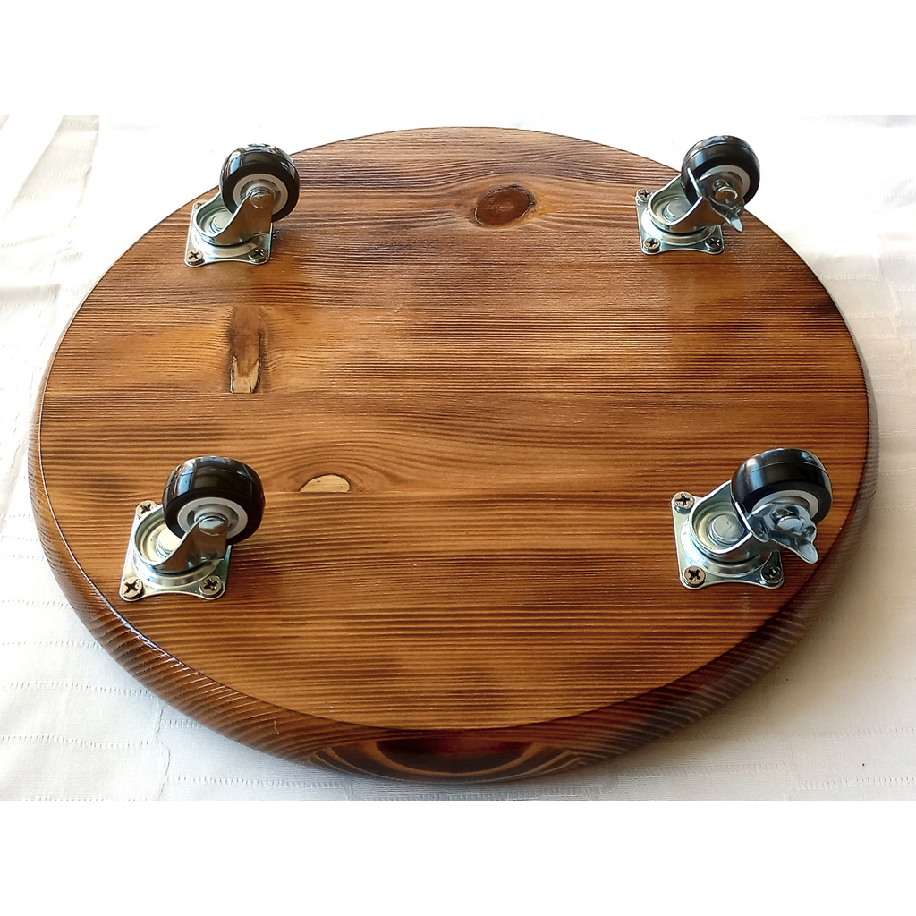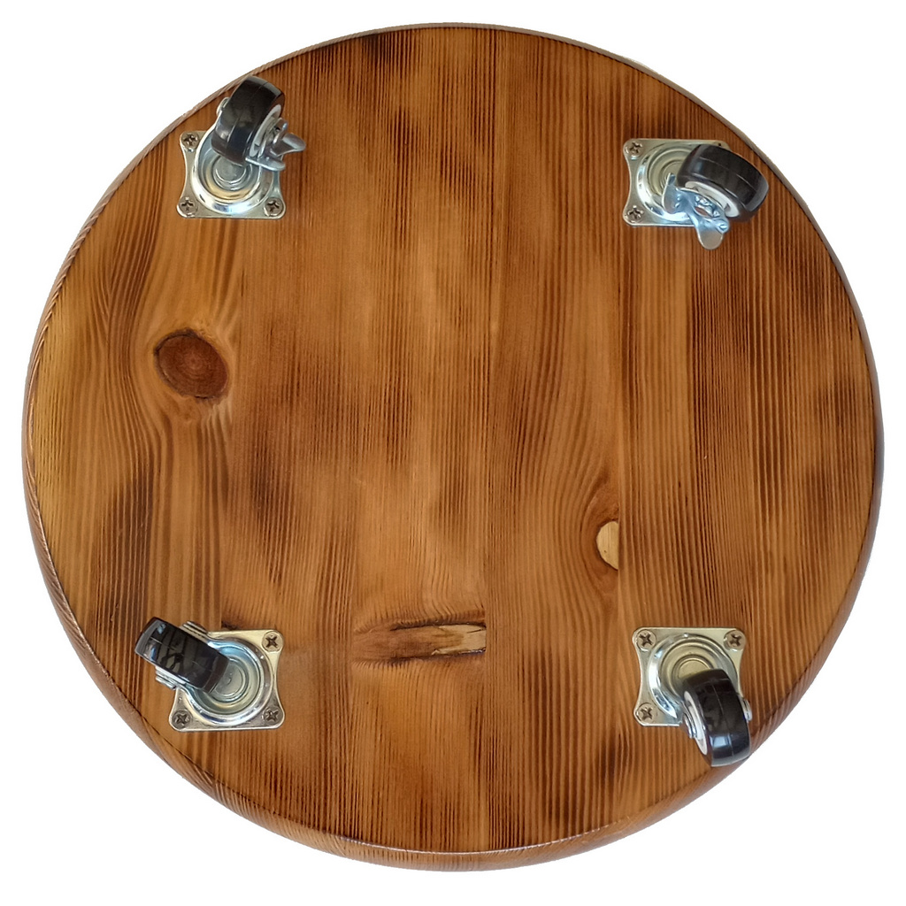 Suport ghiveci flori din lemn ars, rotund, pe roti pivotante – Ø30 cm