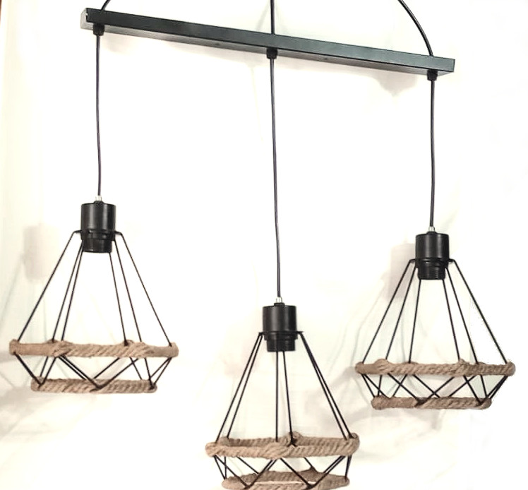 Etichete: Pendul vintage negru mat decorat cu iuta, 3*E27